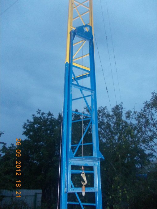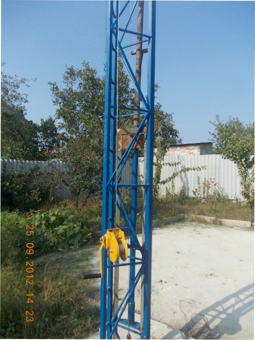 Лебедкой подымаем вторую секцию на несколько сантиметров