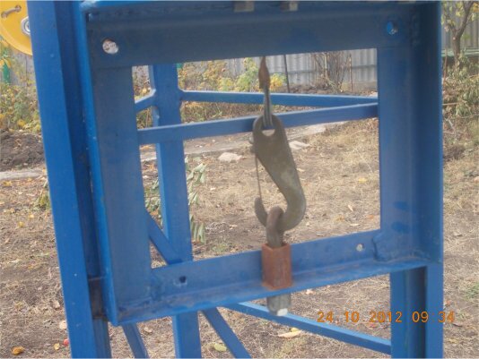уголка .За нижнюю часть подьемника крепим крюк лебедки.