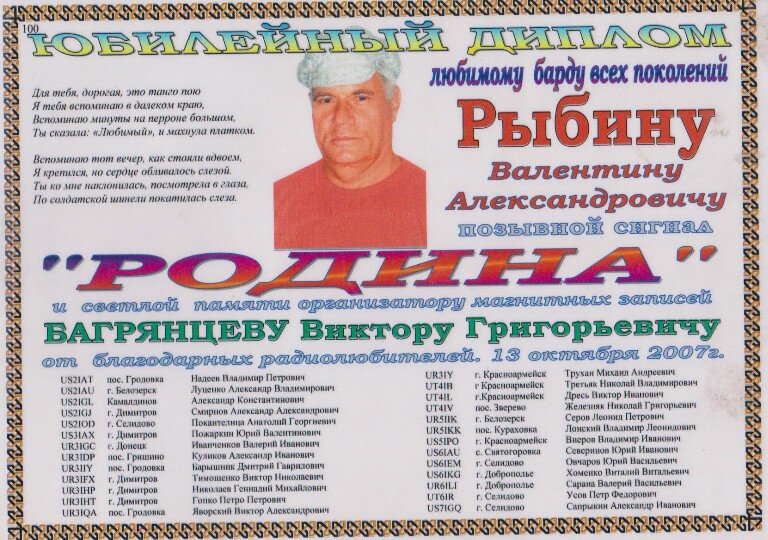 Хочу поблагодарить Дресь Виктора Ивановича, UT4IL , который сохранил