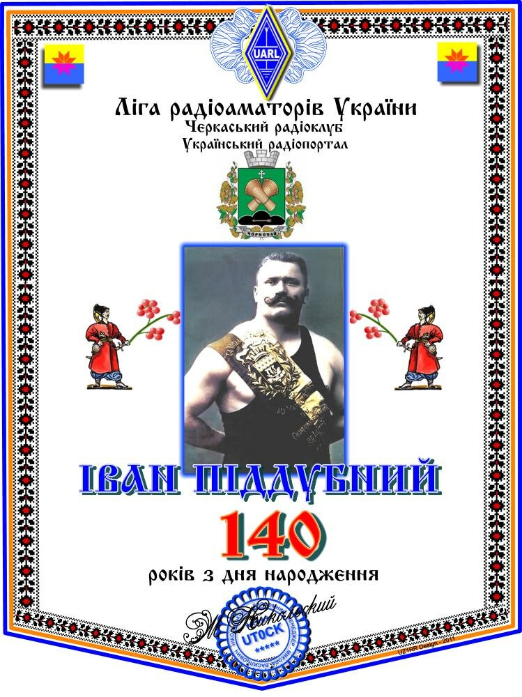 З метою вивчення історико–культурної спадщини Українського народу, популяризації серед радіоаматорів національно–культурної спадщини, пов’язаної з життям видатного Українського борця, легендарного Чемпіона–чемпіонів, якого за 40 років його спортивної кар’єри, ніхто не зміг покласти на лопатки, родом з с. Красенівка, Чорнобаївського району Черкаської області - Івана Максимовича Піддубного (1871-1949 р.р.) - проводяться дні активності радіоаматорів Черкаської області, присвячені 140-й річниці з дня народження Івана Максимовича Піддубного (26.09.1871р.- 08.08.1949р.).