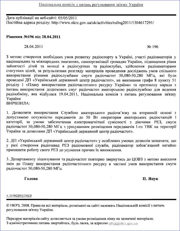 С уважением, председатель Черкасского областного отделения ЛРУ Павел Чекерис /UT7CA/.