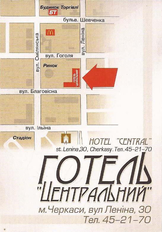 Адрес гостиницы: ул. Ленина, 30. Тел. (+38 0472) 45 21 70. ). Схема расположения гостиницы прилагается.