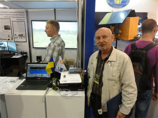 Все увиденные средства связи рассчитаны только на цифровые виды модуляции, с задействованием всех современных технологий: интернета, изернета, космических систем. Наконец-то увидел в действии работу трансивера SDR, разработанного специально с доработками для применения в военной сфере и представляемого на выставке прекрасным радиоспортсменом, конструктором, радиолюбителем Владимиром Джулаем UY2UA (на фото выставочный стенд SDR технологий. К сожалению, самого Владимира застать в этот день не удалось, он представлял свой стенд в первый день работы выставки, когда ее посещали члены Правительства).