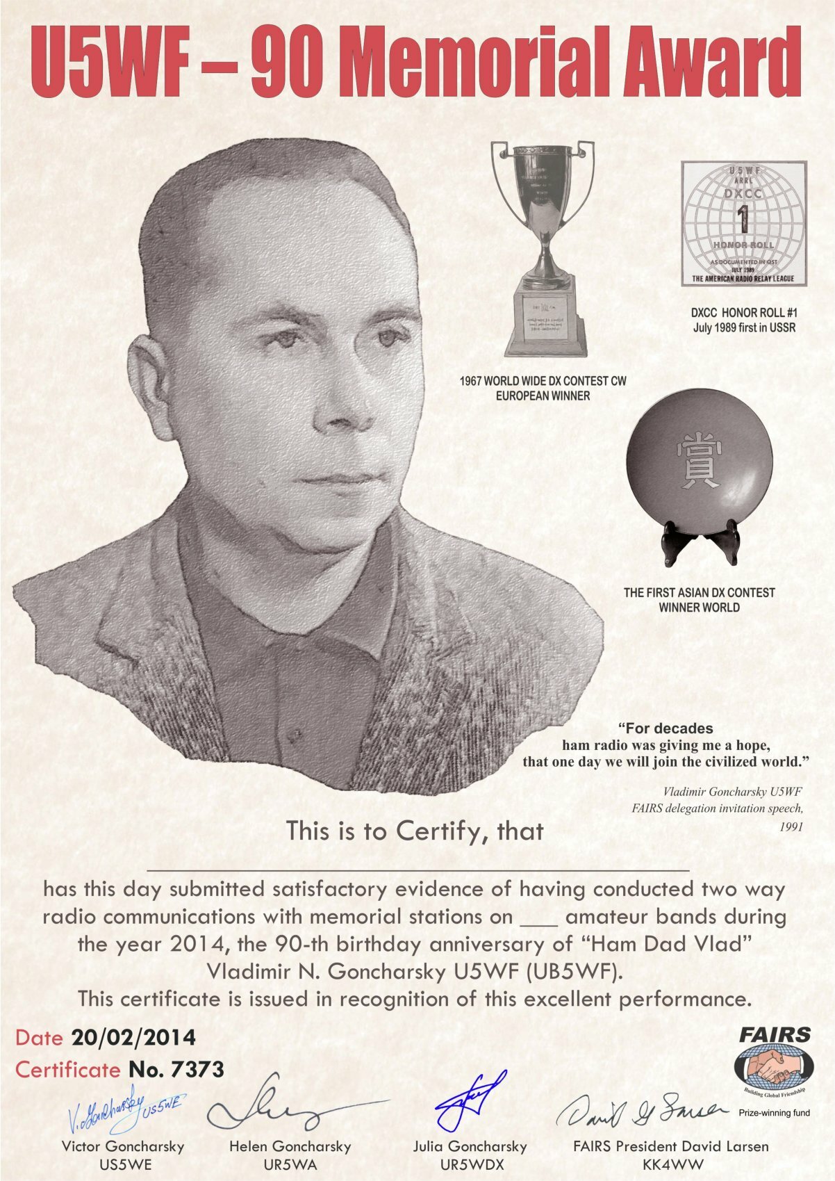 Диплом «U5WF-90» учрежден в честь 90-летия со дня рождения выдающегося