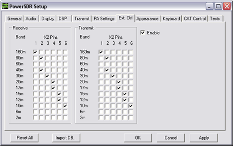 Электронные ключи с1 по 6 контакты программируются в сетапе программы PowerSDR и могут быть использованы для коммутации антенн, переключения диапазонов в усилителе мощности и т.п.