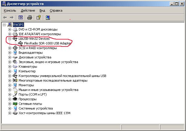 2. Подключите адаптер USB, операционная система обнаружит новое устройство и предложит установить драйвер. Укажите путь для поиска C:\Program Files\FlexRadio Systems\USBIO Windows установит драйвер. Возможно при установке система не сможет найти файл libusb0.sys, укажите тот же путь для поиска. В итоге, после установки в диспетчере устройств будет соответствующая запись.