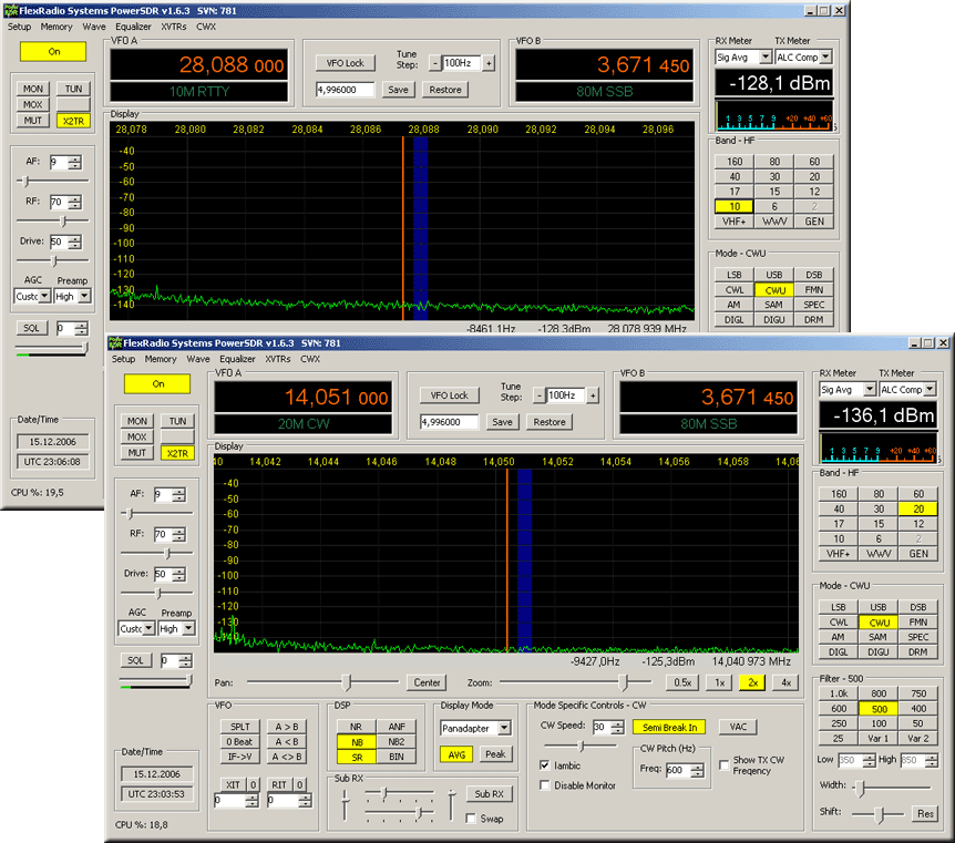 Примеры загрузки различных процессоров программой PowerSDR: