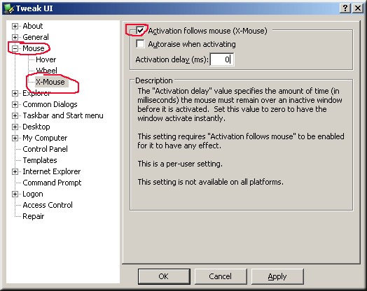 С функцией X-Mouse нужная Вам программа будет автоматически активироваться и всплывать поверх всех окон, достаточно навести на неё курсор мыши, даже если окно программы едва выглядывает из-за других запущенных программ на рабочем столе.