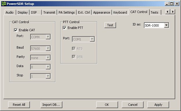 Настройки в PowerSDR выглядят так.