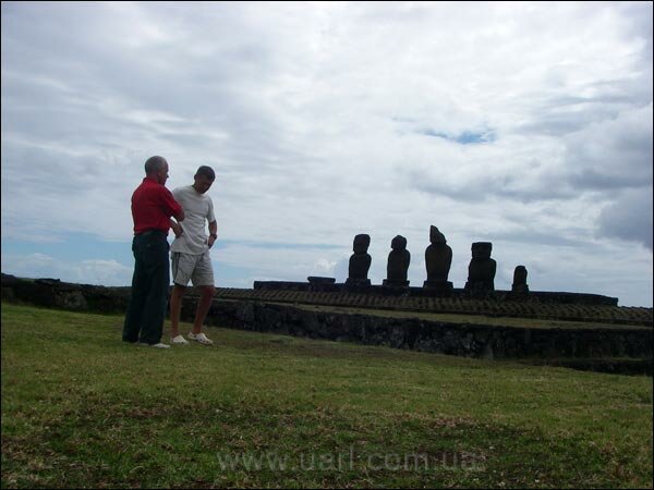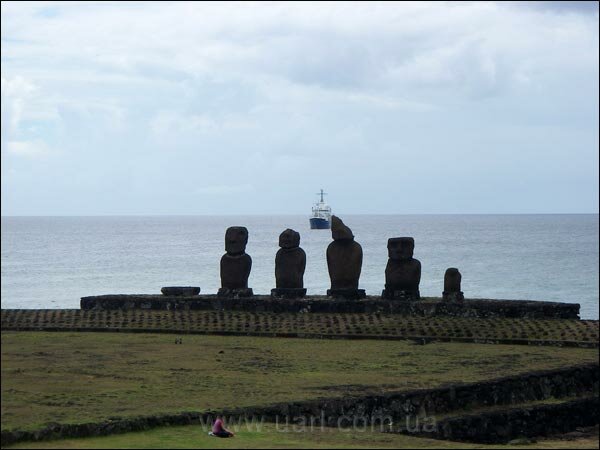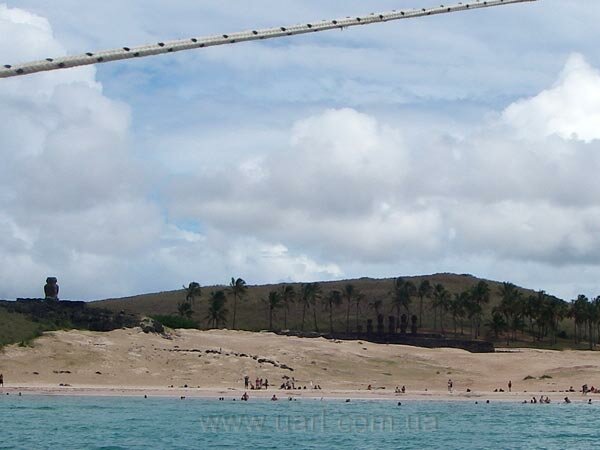 Остров Пасхи 12.12.2010 года в 17.30 мы бросили якорь в бухте Ханга Роа острова Пасхи. Еще на подходе увидели яхту, стоявшую на приличном удалении от берега. Мы пошли к ней. Как ни странно, но все попытки вызвать «Радио Ханга Роа» на подходе к порту оказались безрезультатны. Лишь когда были уже в бухте и искали место для якорной стоянки, нам ответили. Мы дали информацию на английском языке. В ответ нам что-то прохрипели. Я ничего не понял и повторил на испанском: «Яхта «Купава». Флаг Украины. На борту 2 человека. Последний порт - Хуан Фернандес. Планируем стоять 4 дня». В ответ услышал традиционное: «Спасибо, сэр». Мы прошли мимо стоявшей на якоре яхты. Это была достаточно большая, футов 40, классических обводов яхта «голова макрели и хвост трески». Она была без флага и без названия. Но чилийский флаг под краспицей, все же, развивался. Это означало, что яхта не из Чили. Яхта стояла далеко от берега, и мы решили найти местечко поближе. Но тут нас вызвали по радио портовые власти и попросили отойти от берега и стать на одной линии с уже стоящей яхтой. Мы отошли немного и бросили якорь. Нас опять вызвали и попросили отойти еще на 20 м. Интересно, как они отмерили эти 20 метров. И тут я увидел небольшой надувной красный буй в конце бухты. Мы были как раз на 20 м за линией буй - окно капитана порта. Это створ, который легко контролировать. Ветер дул с берега. Мы оторвали от дна якорь и попытались сдрейфовать. Но прибойной волной нас несло против ветра. Запустили двигатель и через несколько минут, наконец, стали в нужном месте. GPS показывала координаты: S27°08,796? W109°26,179. В это время на палубе соседней яхты показался молодой парень. Мы обменялись приветствиями. Следом за ним появилась девушка, которая тоже помахала нам рукой. Позже, когда мы ныряли в поисках кораллов, мы обнаружили, что это единственное здесь место, пригодное для якорной стоянки. Только здесь дно было песчаное и почти без кораллов. Теперь понятно, почему портовые власти тщательно контролируют место якорной стоянки. И дело не только в том, что они беспокоятся о сохранности их подводного ландшафта. Это еще вопрос безопасности. В кораллах легко потерять якорь, что у нас чуть не произошло потом. Первым делом после прибытия уселись за чай. Затем надули тузик, повесили на него мотор, который подарила нам австралийская пара Эоин и Сюзи в Пуэрто Монтт, и приготовились к высадке на берег. До берега было метров 300 и на веслах нам пришлось бы не сладко. Тем более, при постоянном ветре с берега. Вот уж повод вспомнить Эоина и Сюзи добрым словом. Высадились в рыбацкой бухте. Это небольшая бухта, глубиной всего около метра. Бухта достаточно хорошо защищена. На подходе лежат две груды камней, которые стали любимым местом серфингистов всего острова. Здесь рождаются большие прибойные волны, которые всегда собирают много людей. В основном, это дети и молодежь. Есть даже девушки. Люди постарше предпочитают каяки для глиссирования по волнам или занимаются греблей на проа. Для того, что бы войти в бухту, нужно пройти между этими камнями, обогнуть левым бортом небольшой мыс с маяком и параллельно берегу войти в маленький «порт», в котором кроме десятка рыбацких лодок и лодок дайверов ничего больше и уместиться не может. Такой вход хорошо защищает бухту не только, и не столько, от ветров (ветры почти все время дуют с востока, т.е. с бере