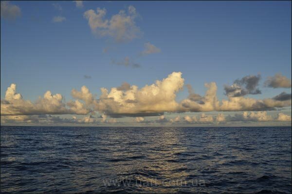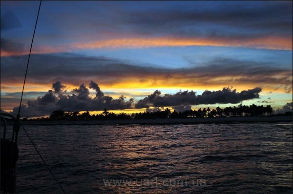 Вахты ночью не несли. Атолл мы зафиксировали визуально и смогли точно внести его координаты в GPS. Да и дрейфовали мы с подветренной стороны. Поэтому ограничились лишь тем, что в GPS установили сигнал тревоги на приближение к острову и на изменение курса дрейфа. И легли спать. Время от времени, все же, вставали проконтролировать обстановку.