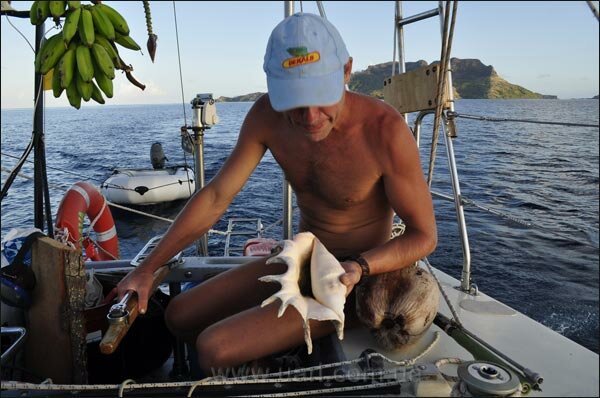 Обойдя вокруг атолла и не найдя подходящего места для якорной стоянки, решили идти к третьему острову архипелага - о. Anuanuraro. До него было 14 миль на 306 градусов. Ветер уже успел измениться на северный и дул около 10 уз. В такой ветер в полный бейдевинд генуя и грот могли дать нам не меньше 5 узлов скорости. А это означало, что часа через три мы сможем уже быть у острова.