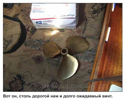 попытке стать на якорь, мы потеряли винт – отломалась одна лопасть.