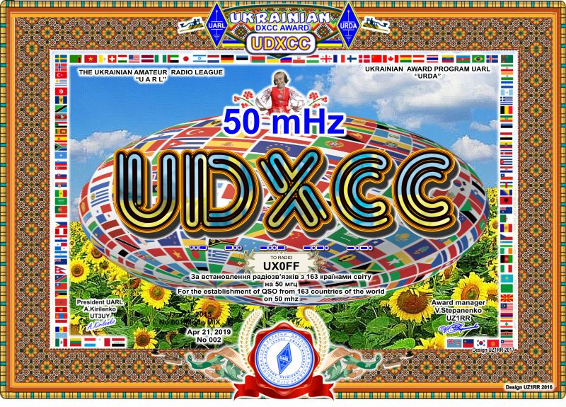 Украинский диплом "UDXCC-50-mhz"